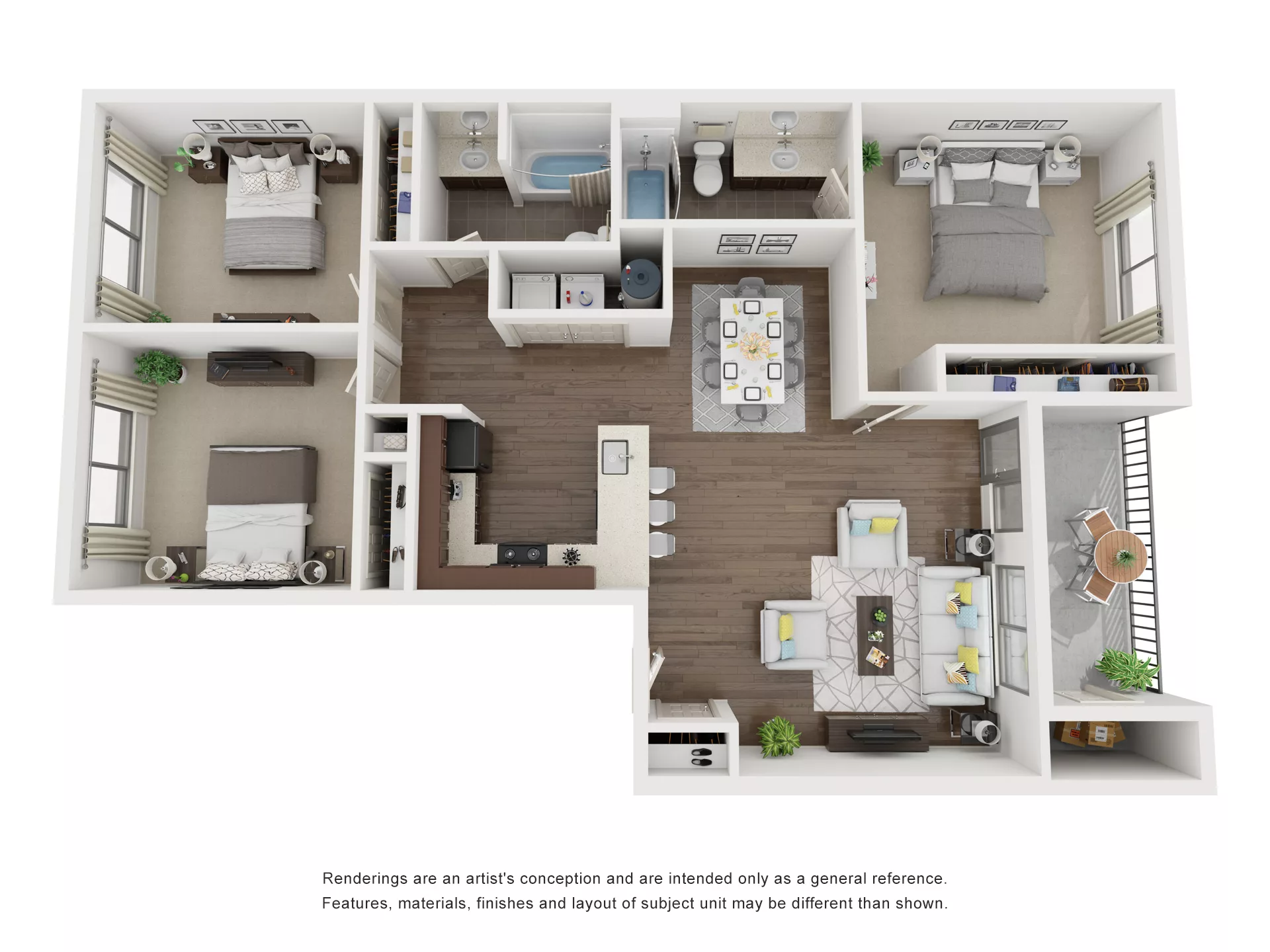 Our floor plans feature open-concept living room/dining room areas, spacious kitchens, and bedrooms large enough to comfortably fit king-size beds. Natural light pours in through large windows and brings each apartment to life. Your new home is ready for you to kick back, relax, and enjoy.